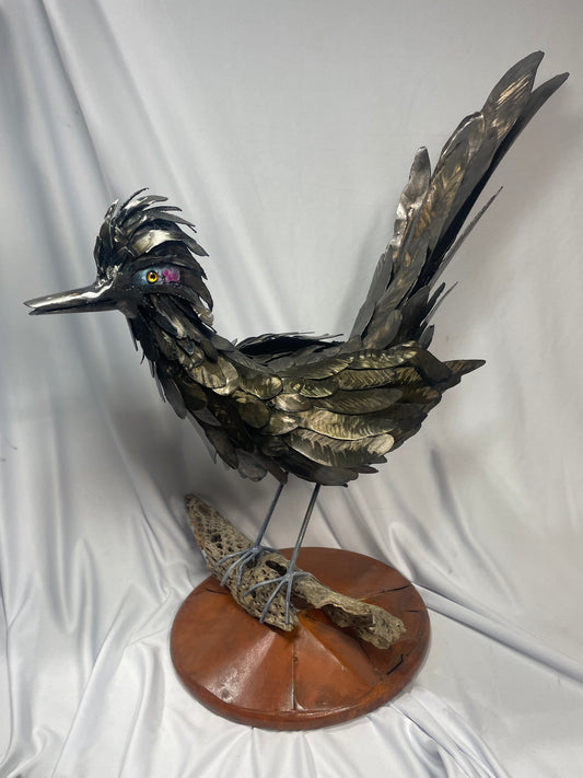 Handcrafted Steel Roadrunner Sculpture with Driftwood PerchRegular price $599.00 USDRegular priceUnit price / per-