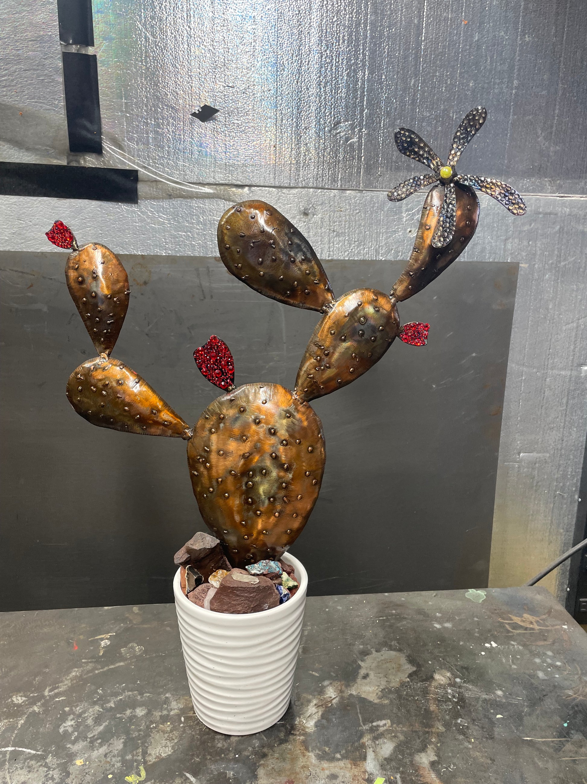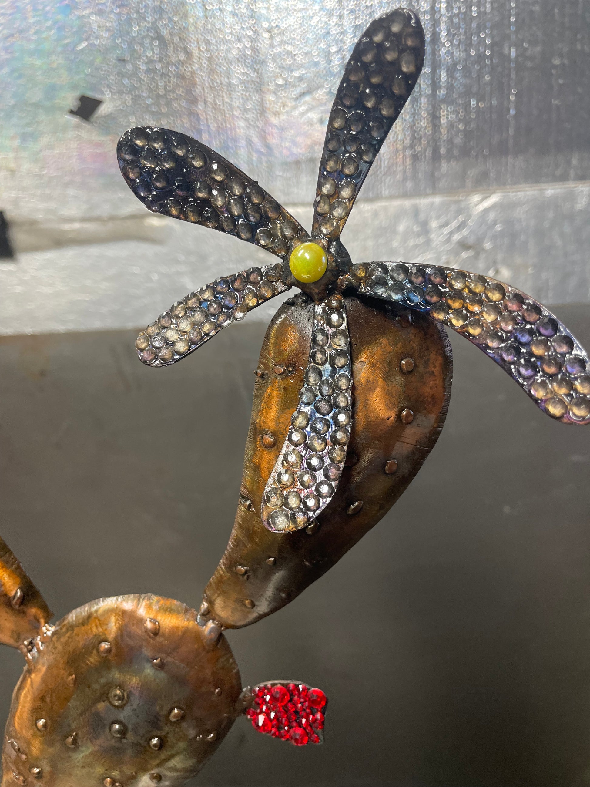 Custom Metal Cactus Sculpture Rhinestone Patina Art Yard Metal Ornament