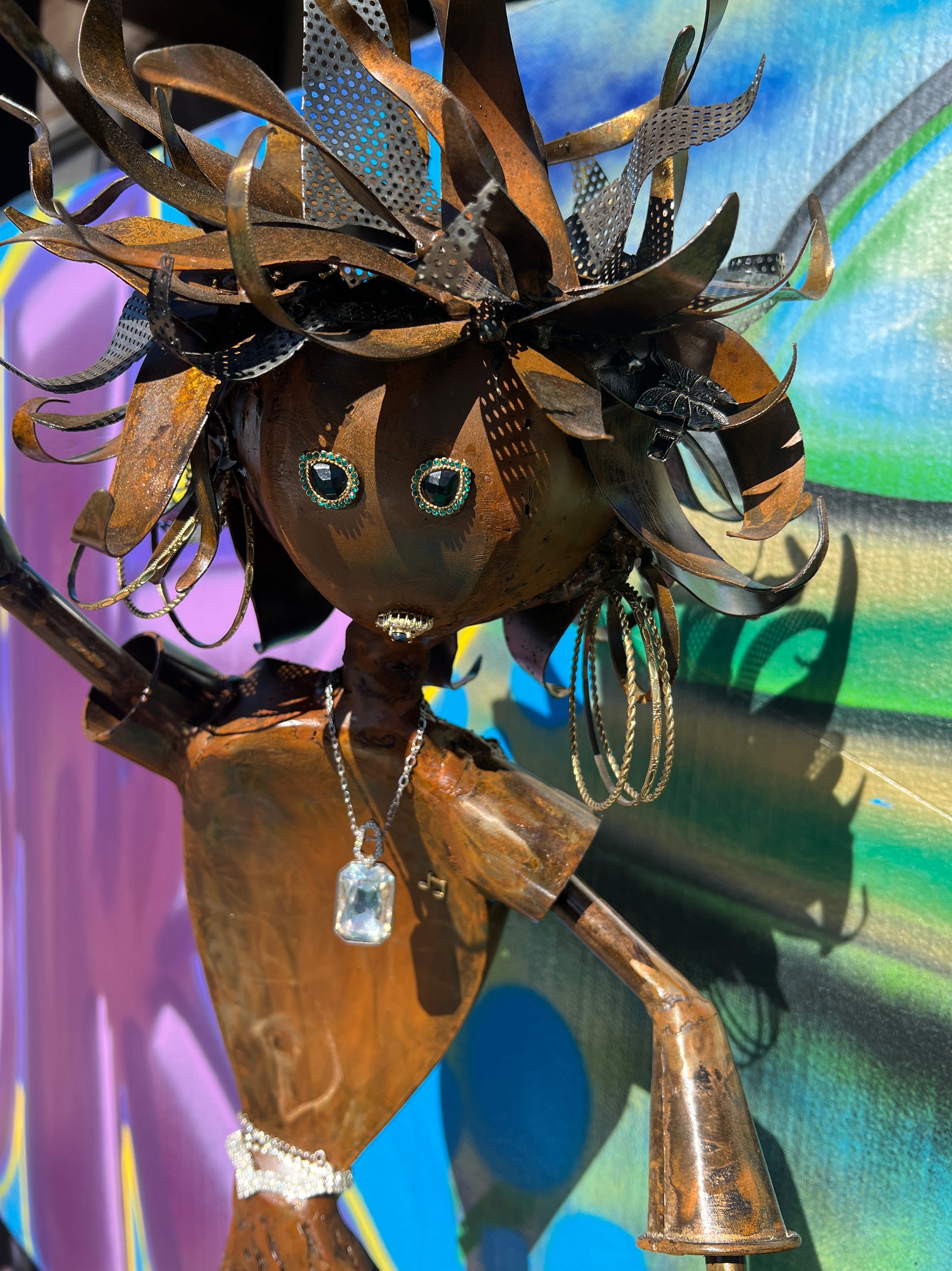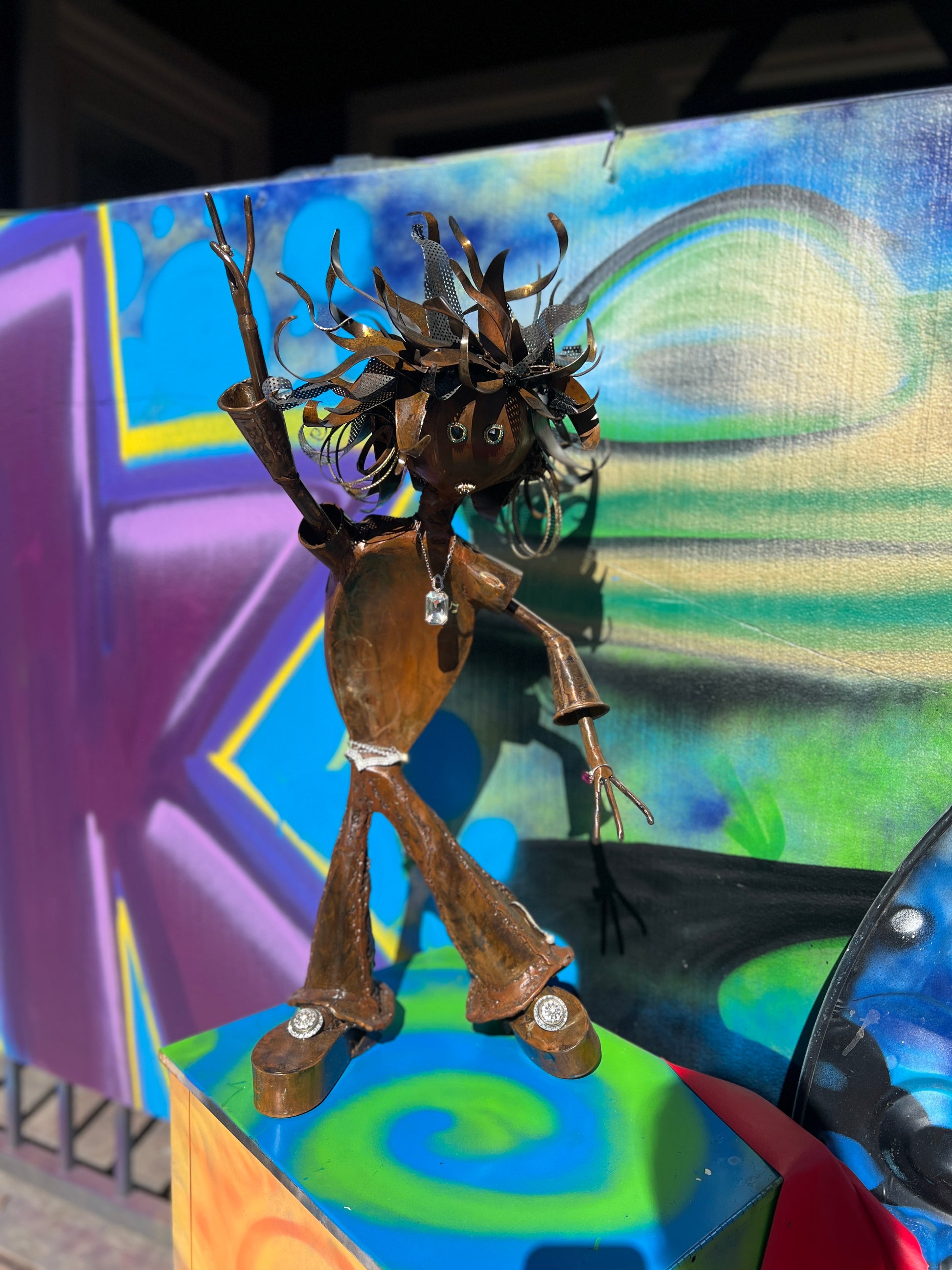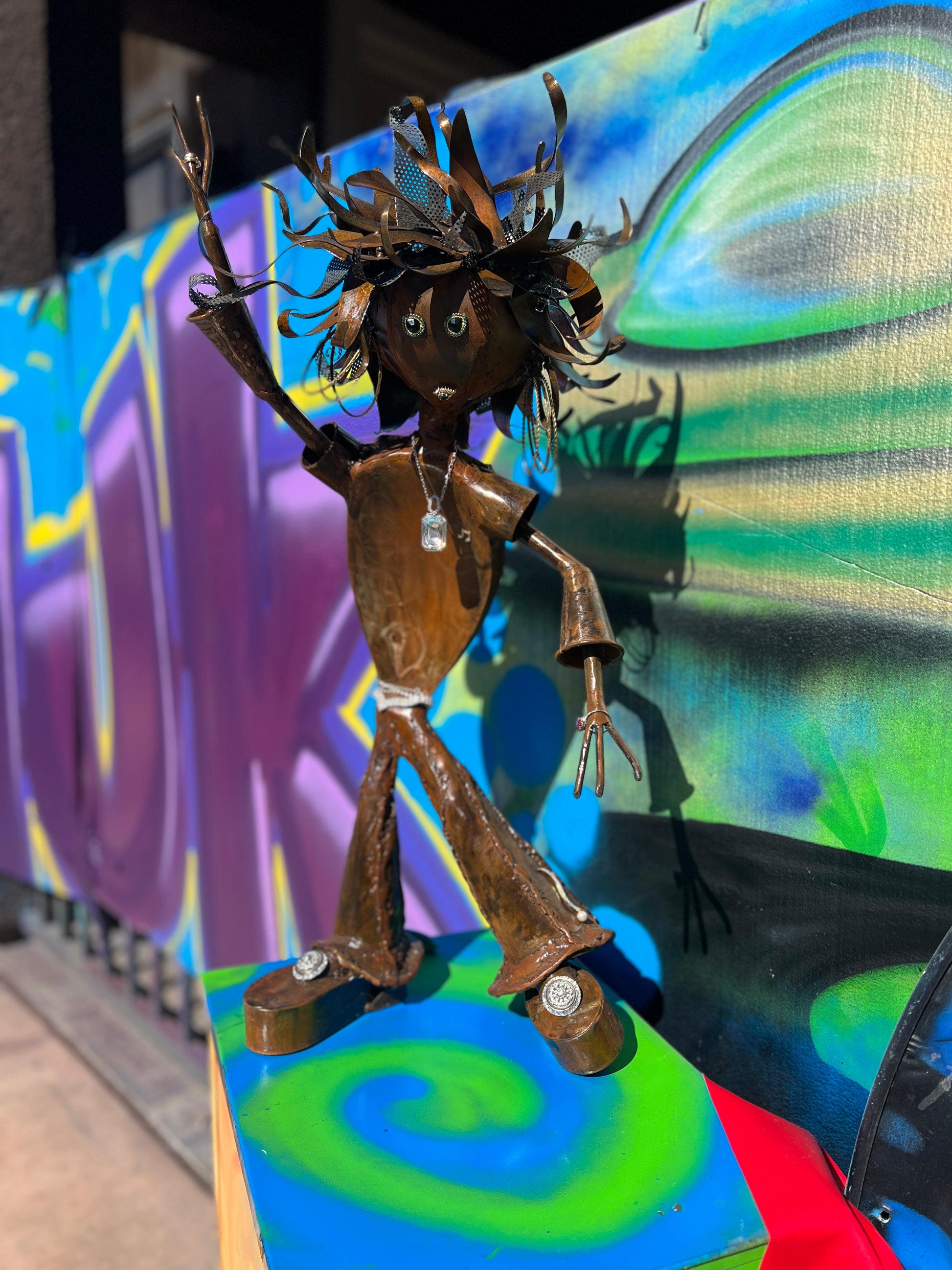 Custom Disco Lady Metal Alien Art Sculpture