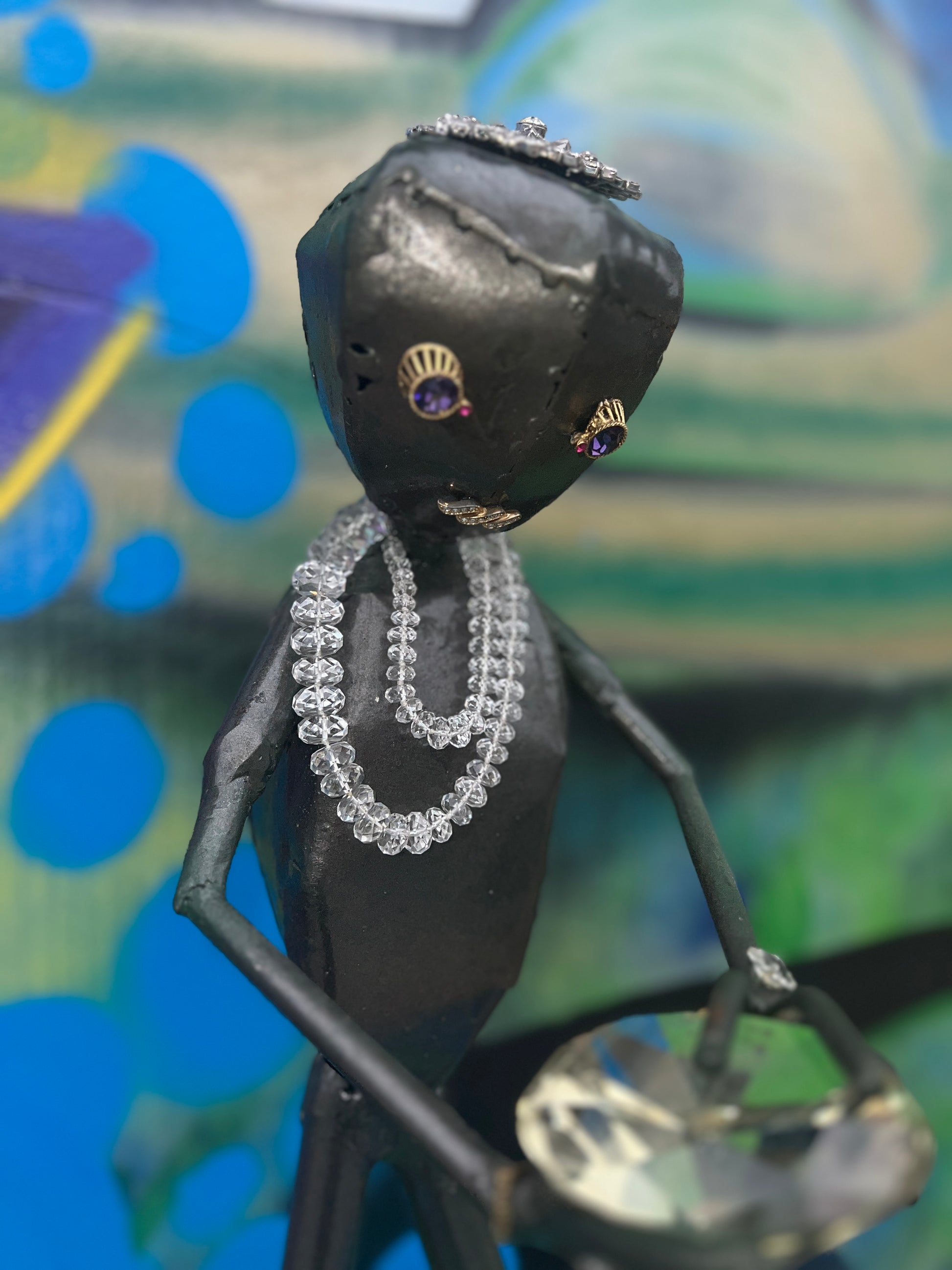 Custom Alien Queen of Diamonds Metal Art Sculpture w/Jewelry