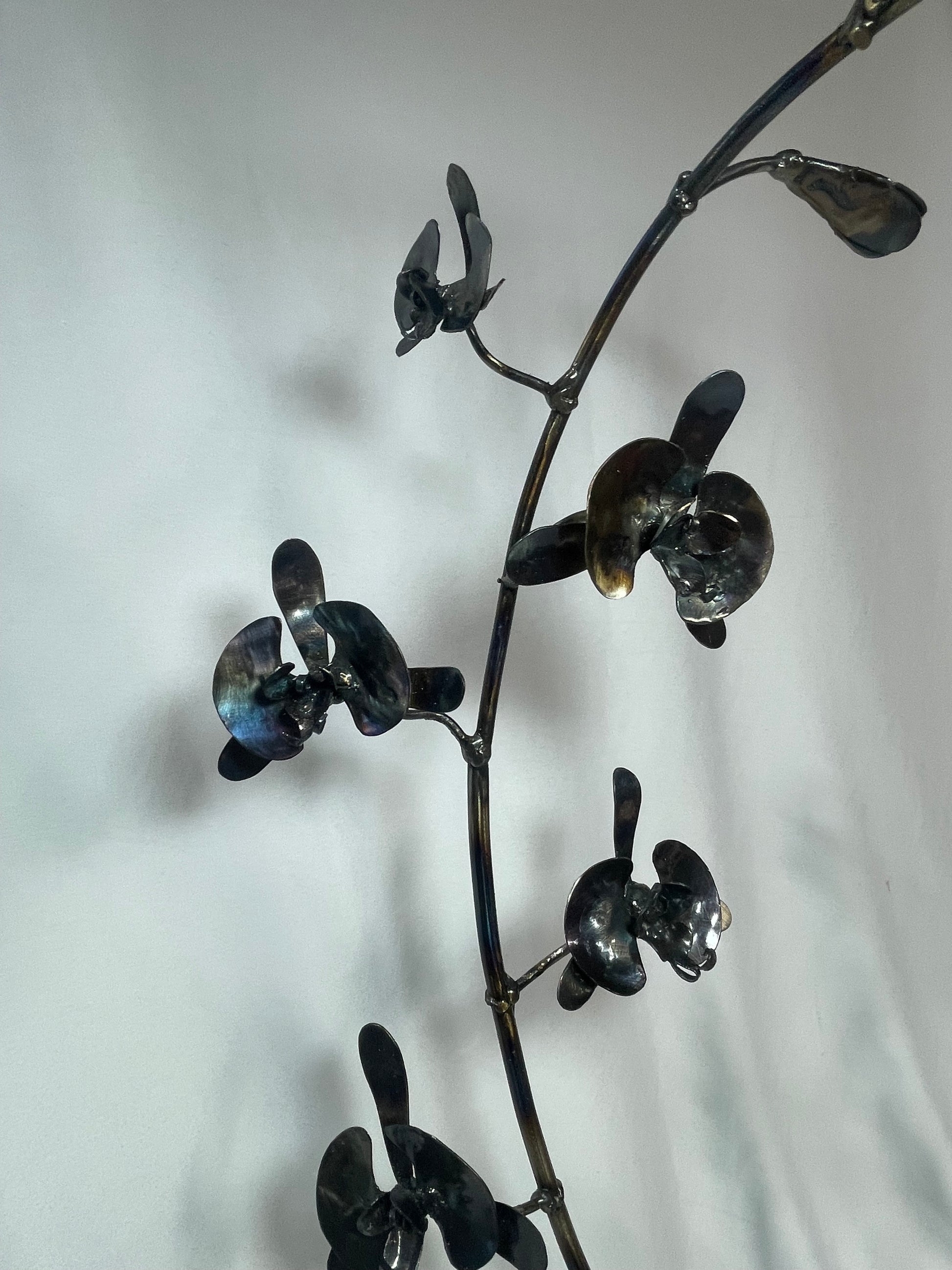 Handcrafted Steel Orchid Sculpture with Heat Patina