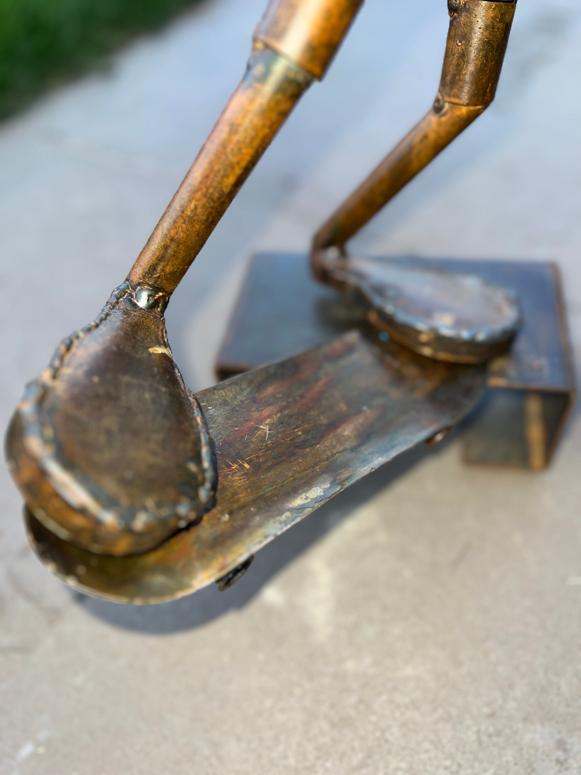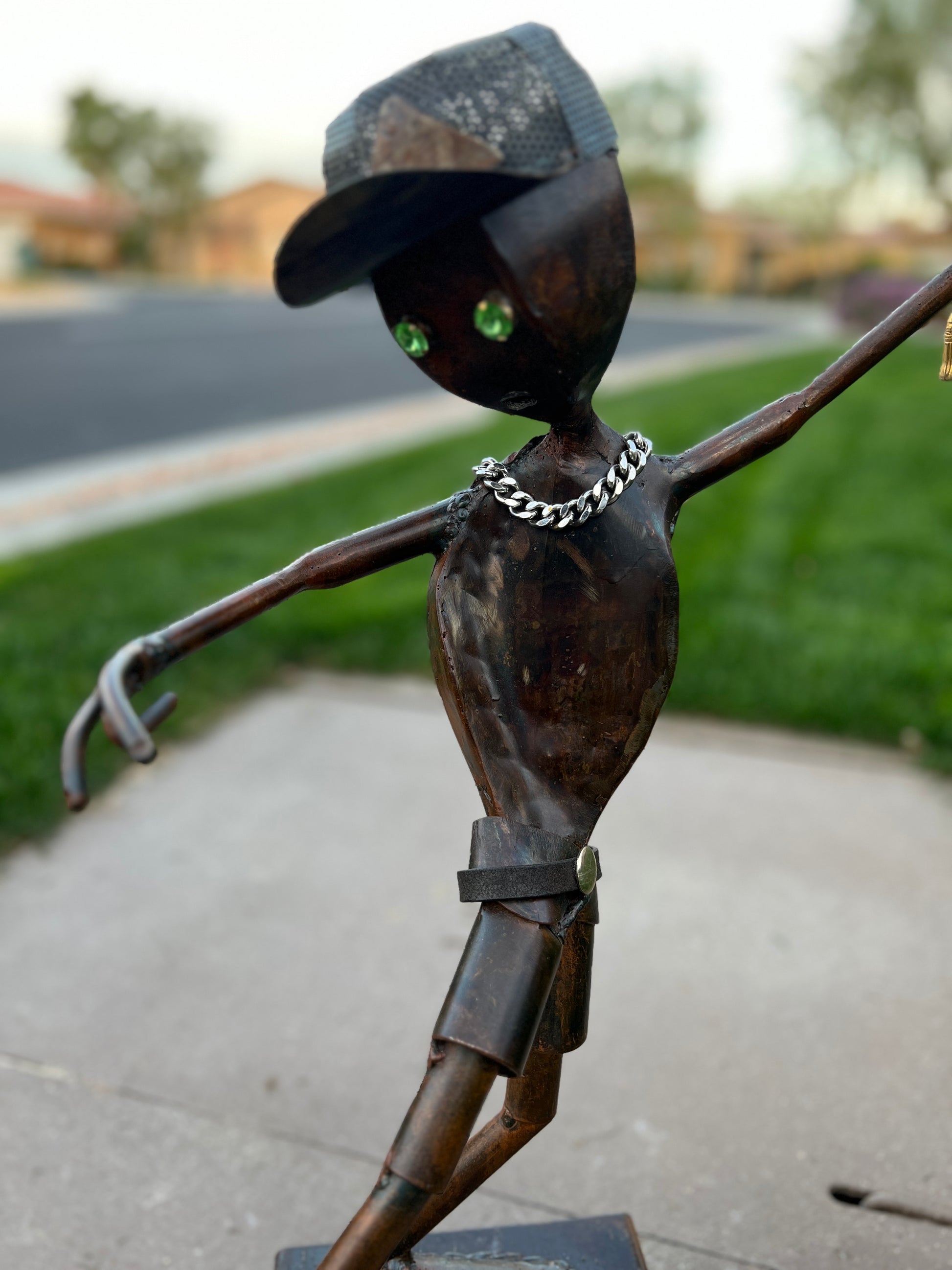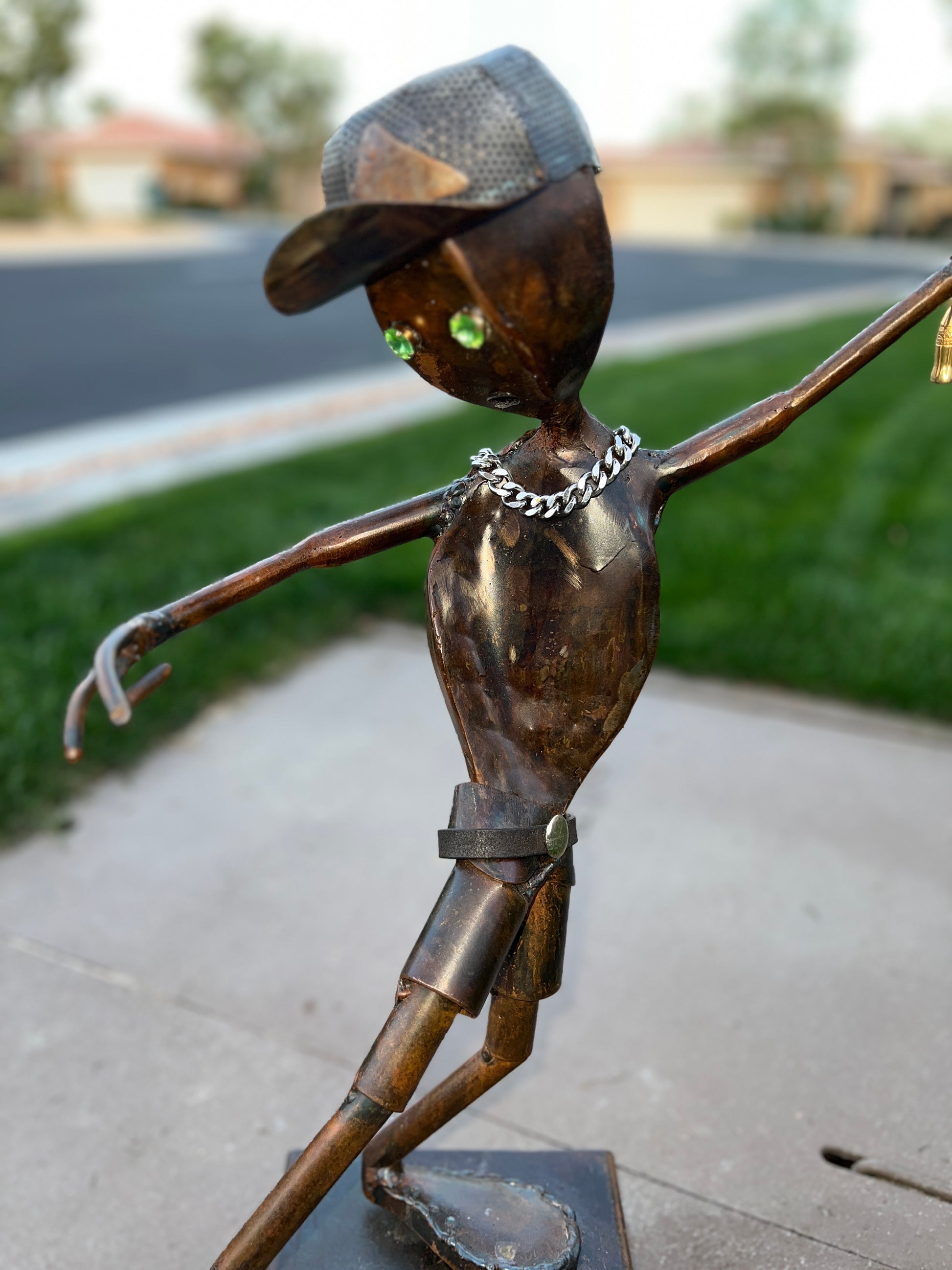 Introducing the epitome of extraterrestrial allure: a captivating custom metal alien sculpture, born from the depths of cosmic imagination and expert craftsmanship. Standing as a testament to the fusion of otherworldly elegance and industrial finesse, this one-of-a-kind masterpiece commands attention with its sinuous contours and metallic brilliance. Each intricately sculpted detail invites speculation about its origin and purpose, beckoning viewers to explore the enigmatic realms of the unknown. With its shimmering surface and dynamic composition, this sculpture transcends mere artistry, becoming a portal to a realm where imagination knows no bounds. Brace yourself for a journey beyond the stars, where the mysteries of the universe converge in a dazzling display of creativity and ingenuity.